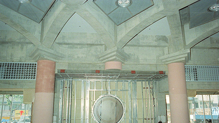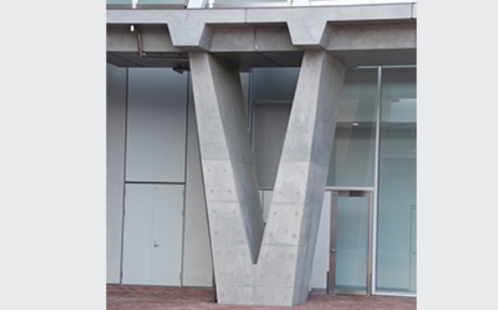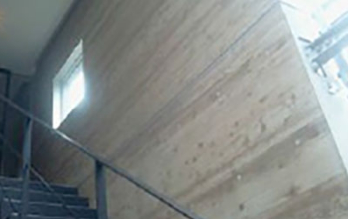 化粧打放とは、コンクリート面に、タイル貼り・塗装等の仕上げを行わずコンクリート素地のままの仕上げを言います。使用する型枠材は、杉板等を使用し、木の木目を表したり、表面処理合板を使用し表面を滑面状にしたり、表面凹凸を付けたり、コンクリート素地本来の美しさを表現させます。