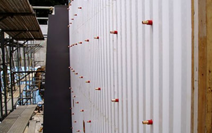 ノンセパ工法の一種で、型枠面にPコン等の後が残らず仕上がりコンクリート面が非常にきれいに打ちあがります。