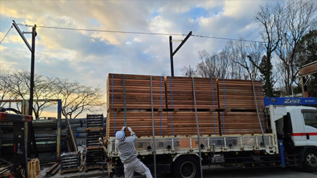 主にラワン等の南洋材を使用するため熱帯雨林の乱伐の一因となり、環境破壊につながるコンパネ等を使用しないですむ、地球環境に優しい型枠工法です。