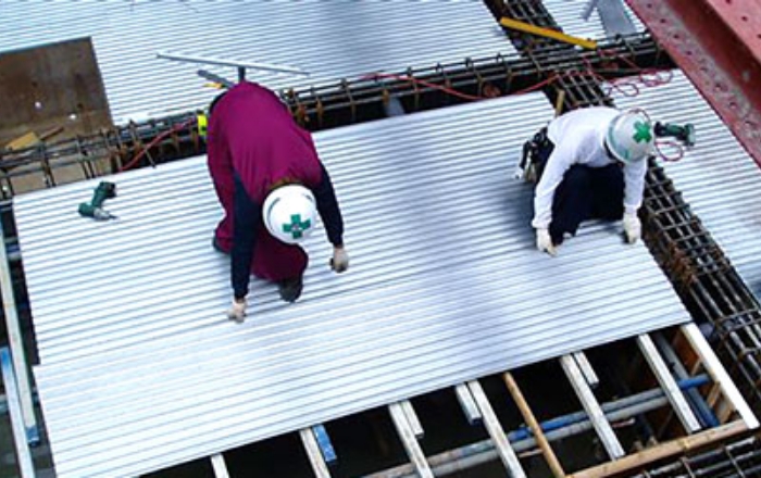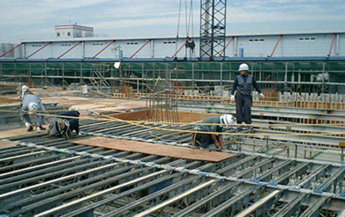 以下は工場加工でキーストンプレートを加工し、工期短縮と解体搬出手間を減少できる工法です。