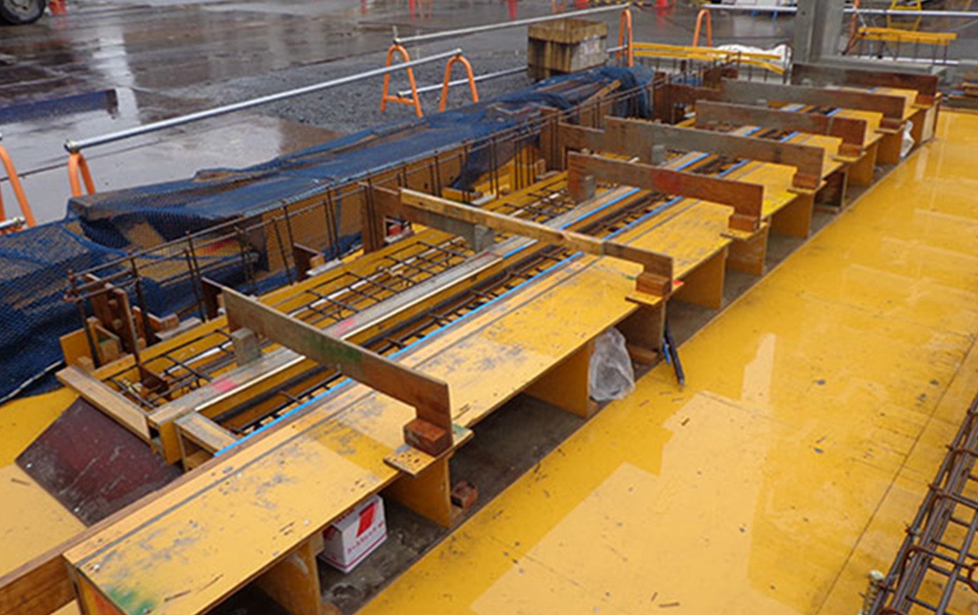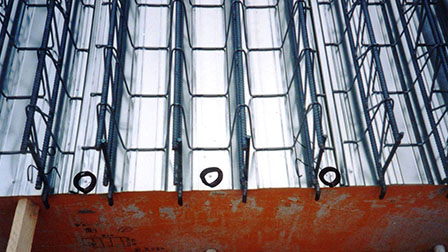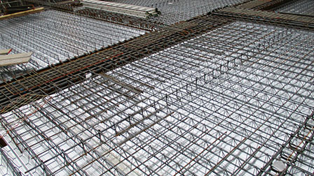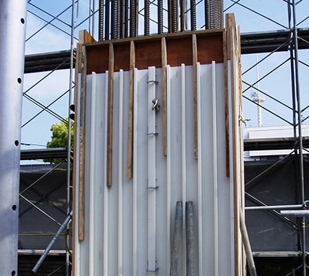 ボルトで固定するために、コンクリート打設伴うバイブレーターの振動等にも強く変形しにくい工法です。