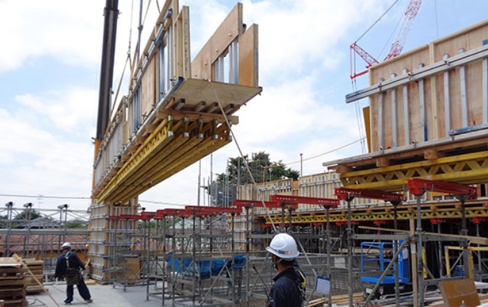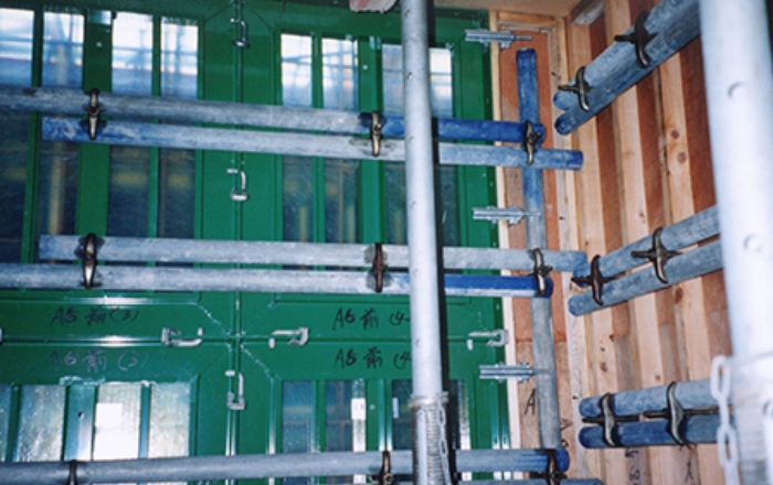さまざまなユニット組み合わせるシステム型枠は、作業の標準化や効率化に貢献しています。荒井工務店では、多彩なシステム型枠にもいち早く対応しています。