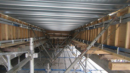 型枠工事に使用する縦パイプが不要となり、材料の運搬費及び現場内のストックヤードの減少になります。