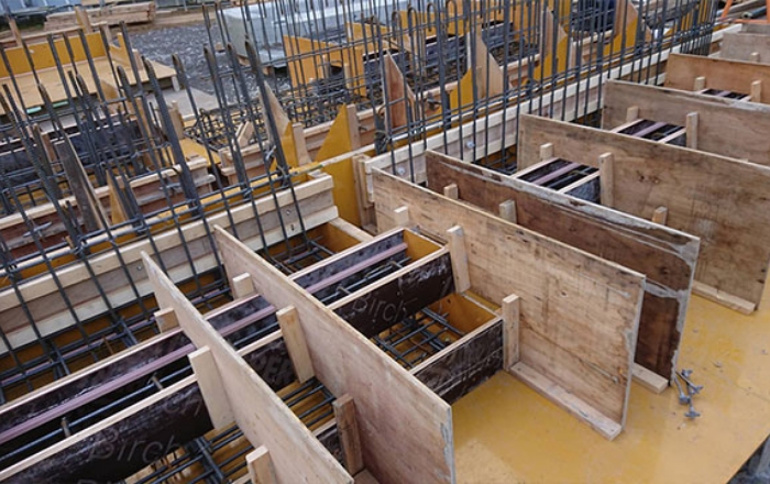 ラワンベニヤの代換えベニヤ 打設時コンクリートの内部様子が見えます。