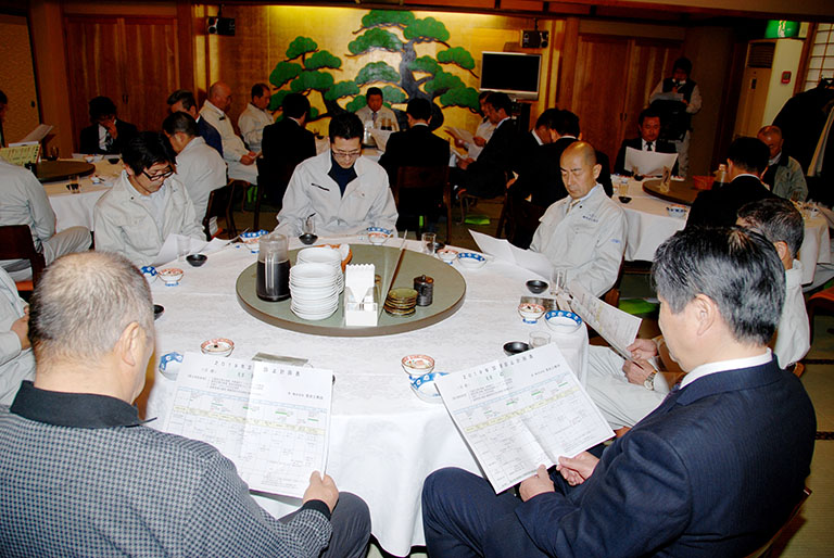 親方、職長、サブ職長が 安全、新工法等勉強しました。終了後懇親会で親睦を図りました。