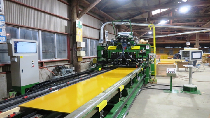 加工機(タダック)では 柱、梁、壁はもちろん階段等も加工図通りに材料を切断、釘打等 パネルを組み立てます。
