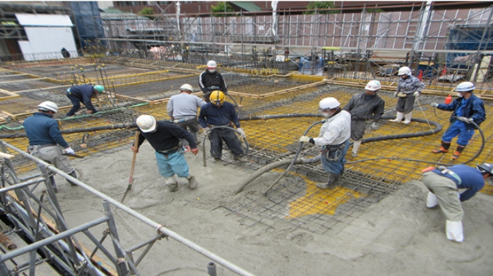 コンクリートを型枠に流し込み、均していく作業です。
