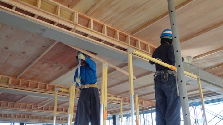 型枠大工の仕事は、型枠の設計から制作、現場での建込み、コンクリートの流し込み、型の解体など様々な作業から成り立ちます。