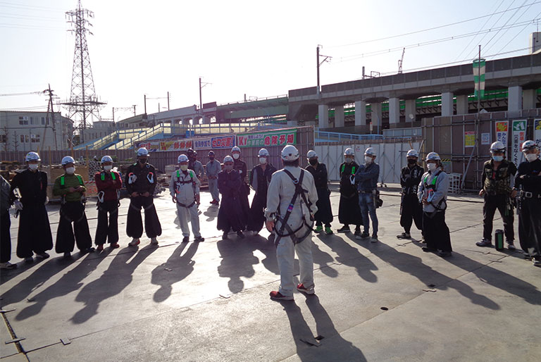 今年は屋外で年頭挨拶・災害防止計画の説明